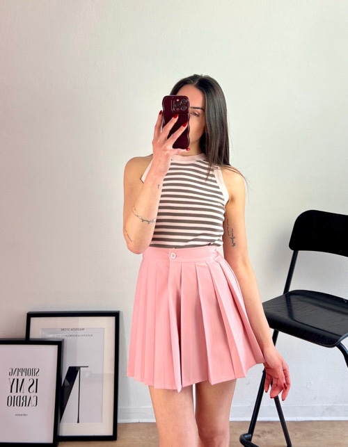 Abito in tessuto elasticizzato a coste con spalla sottile elastica, coppette preformate e spacco su centro dietro