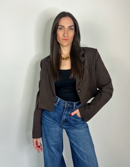 Blazer a monopetto senza abbottonatura con collo revers e spalla rinforzata