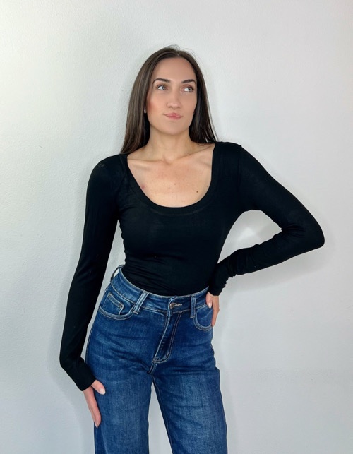 Body in tessuto elasticizzato, scollo rotondo sia sul davanti che su dietro