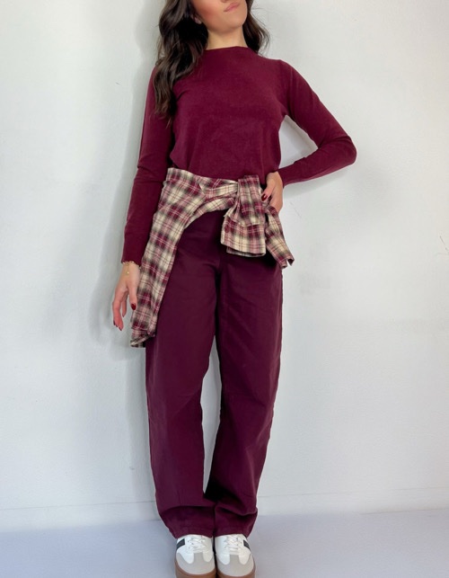 Jeans morbido elasticizzato dal taglio a palazzo, vita alta e passanti con cintura scamosciata incorporata