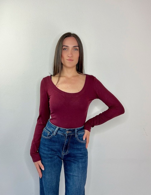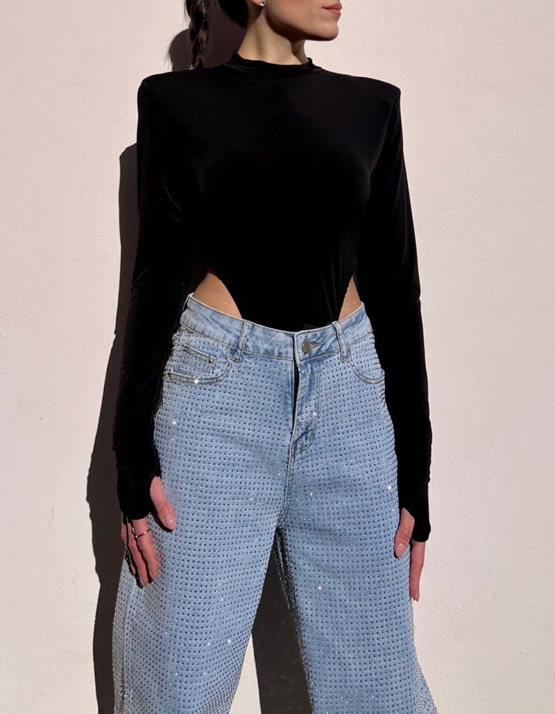Maglia elasticizzata con scollo profondo e manica lunga a guanto