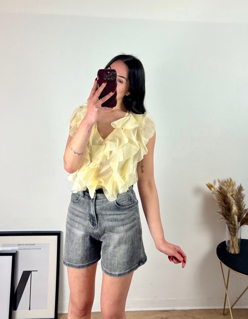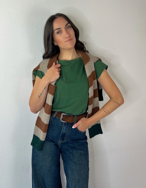 Taglio crop, taglia unica, la consigliamo dalla taglia 38 alla taglia 46