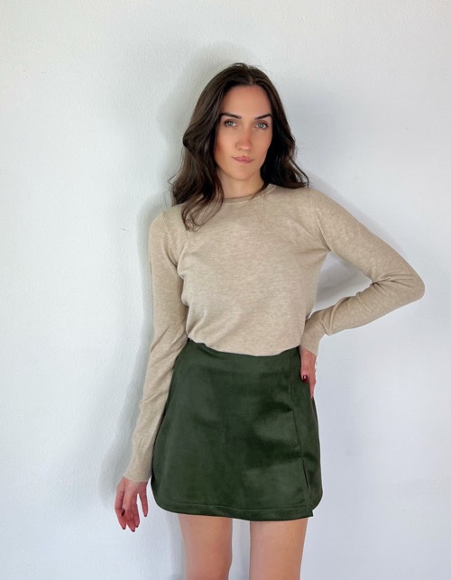 Mini gonna in tessuto morbido elasticizzato con spacchetto sulla gamba